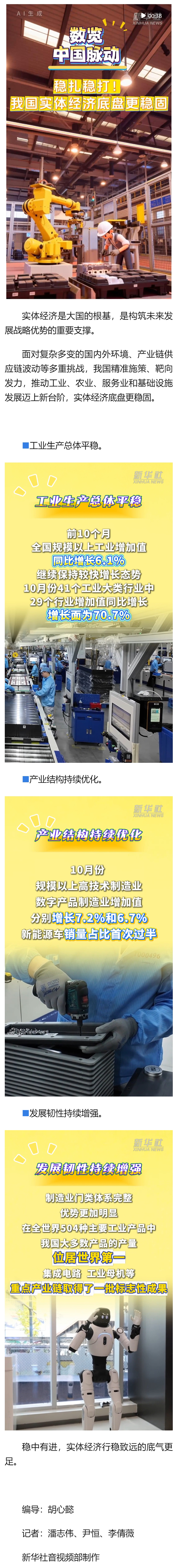 原标题: 数览中国脉动|稳扎稳打!我国实体经济底盘更稳固