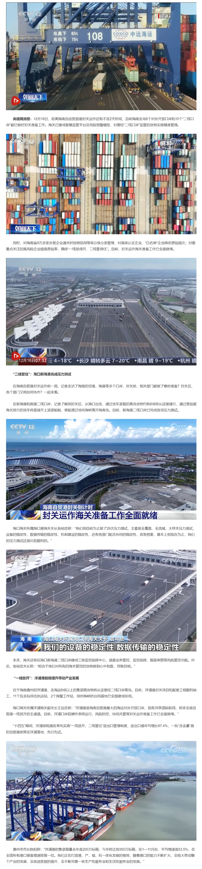 原标题: “一线放得开、二线管得住” 海南自贸港封关运作准备工作已全面就绪
