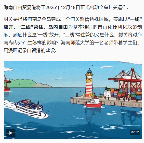 原标题: 视频丨“一线”如何放 “二线”怎么管 用漫画方式了解海南自贸港封关