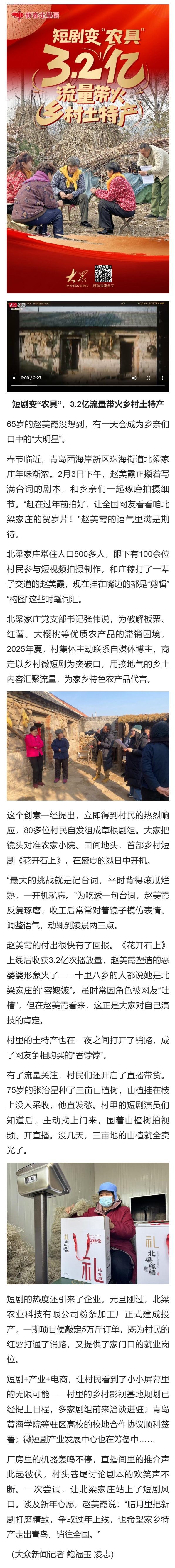 原标题: 新春走基层丨短剧变“农具”,3.2亿流量带火乡村土特产