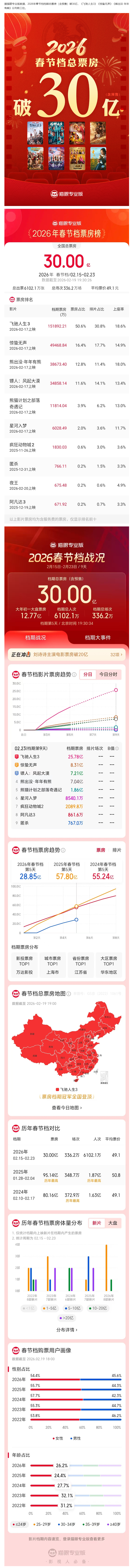 原标题: 2026春节档票房突破30亿