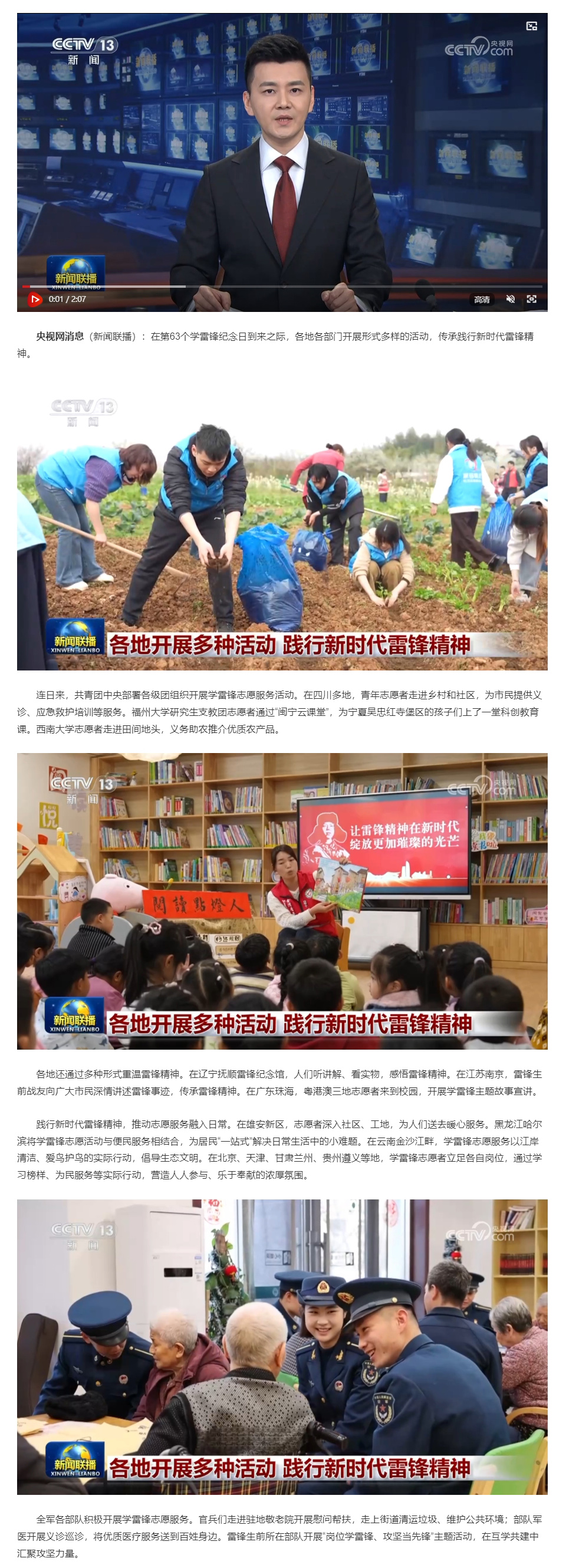 原标题: 各地开展多种活动 践行新时代雷锋精神