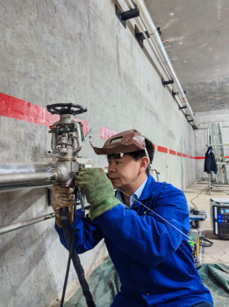 2026年1月25日,师延财在位于福建省福清市的核电厂房内进行焊接作业。