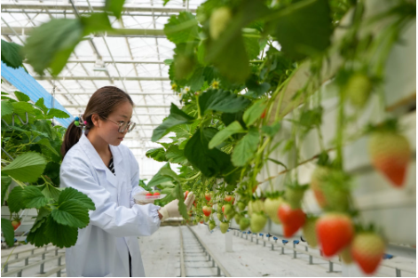 2025年2月26日,在江苏昆山陆家未来智慧田园“A+温室工场”,史春佳进行草莓基本特性检测。“新农人”史春佳通过调查草莓新品种基本特性指标,研发高效栽培技术以及育苗技术等,为新品种、新技术、新模式在华东地区的推广提供依据。