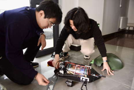 2022年2月21日,王虹在中国矿业大学文昌校区综合楼实验室做实验。