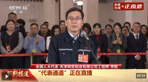 3月12日,十四届全国人大四次会议第三场“代表通道”在人民大会堂举行,全国人大代表、天津钢管制造有限公司工程师李刚接受了记者的采访。