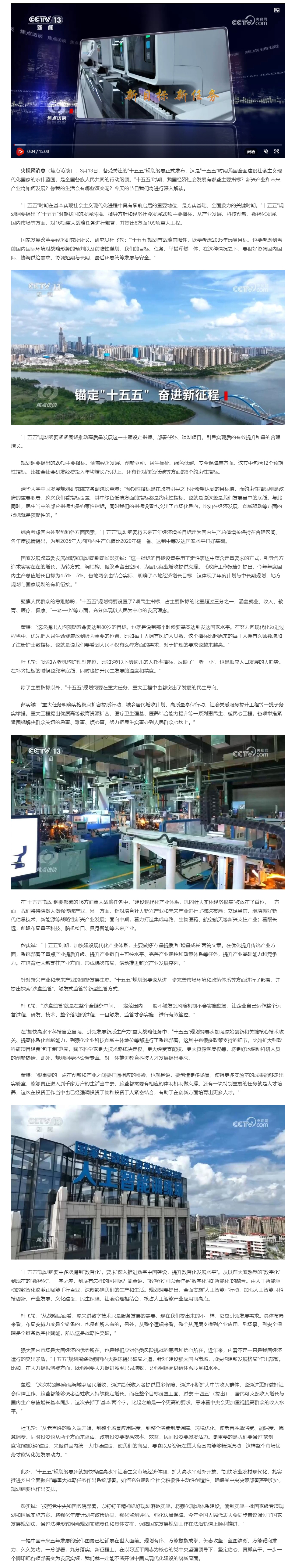原标题: 焦点访谈|从产业到民生 “十五五”规划勾勒中国发展新图景