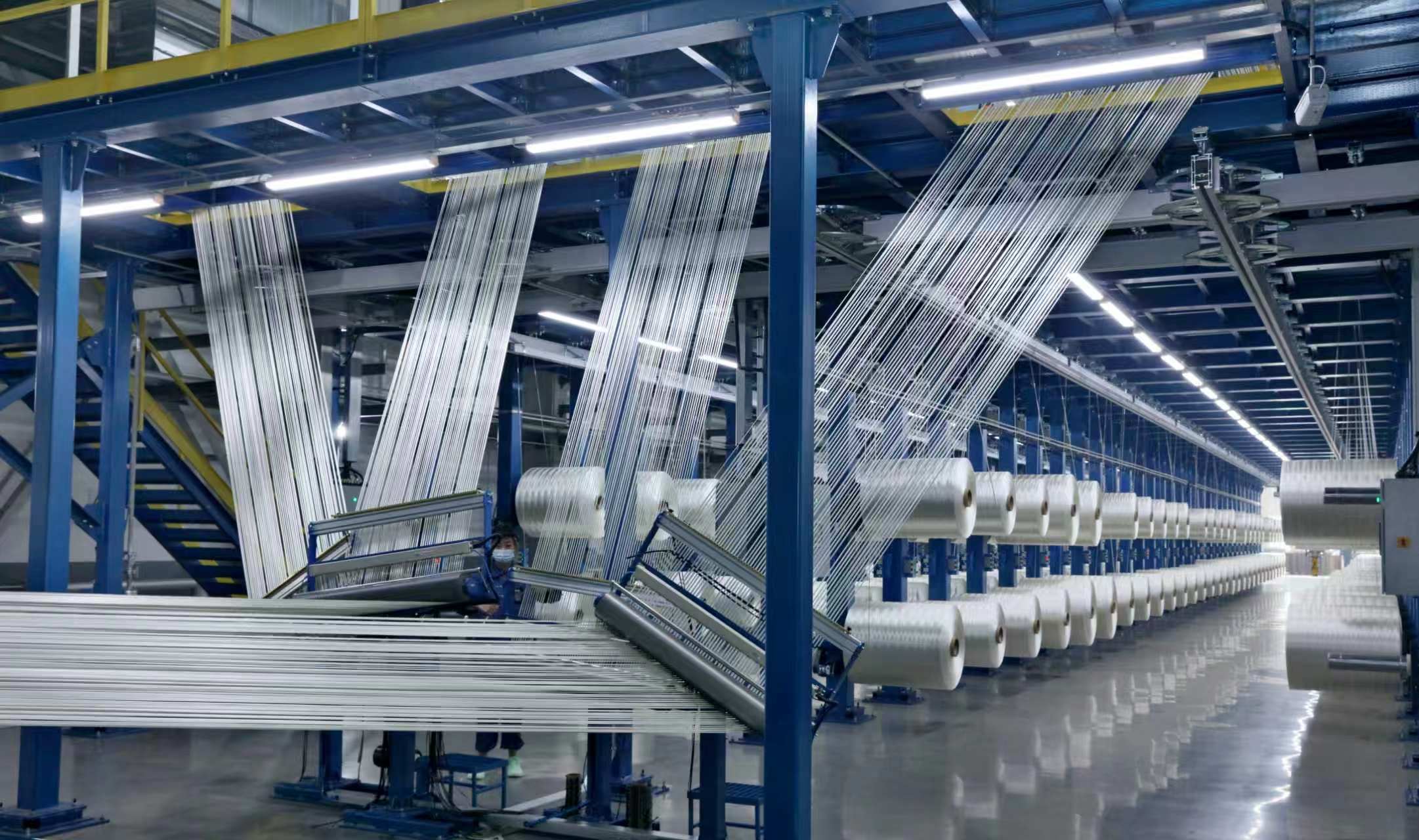 首条船舶领域专用高效率大丝束碳化线生产现场。