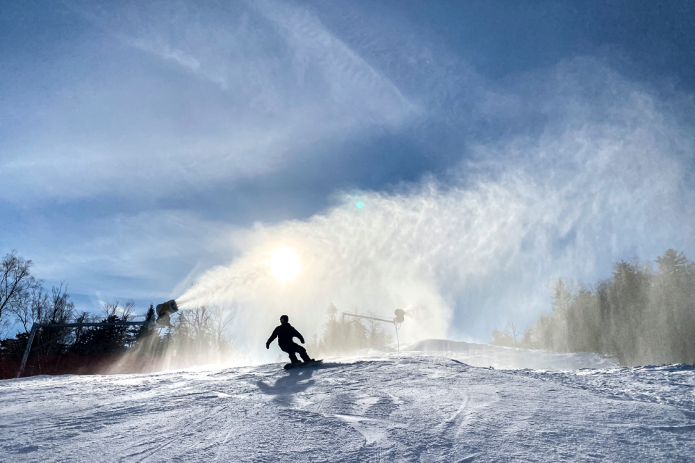 滑雪爱好者在吉林市冰雪试验区北大湖滑雪度假区滑雪。
