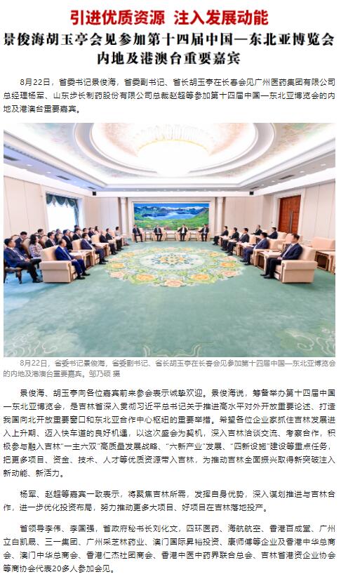 原标题: 景俊海胡玉亭会见参加第十四届中国—东北亚博览会内地及港澳台重要嘉宾