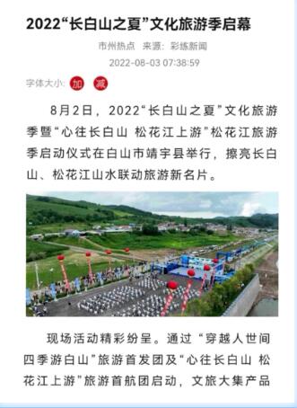 2022“长白山之夏”文化旅游季启动仪式,“穿越人世间 四季游白山”旅游首发团启动活动新闻