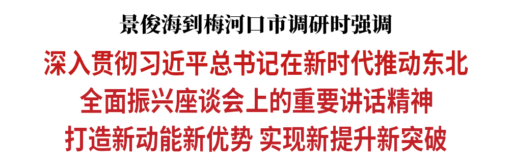 调研中,景俊海强调,梅河口市要在“一主六双”高质量发展战略中找准定位、明确方向、扬长补短,推动资源优势、生态优势、科研优势、产业优势、区位优势转化为发展新动能新优势。要持续加大招商引资力度,积极培育产业园区,加强吉浙对口合作,主动对接全国产业链供应链,推动央企再布局、民企大发展、外企快涌入,更好地吸引人才、集聚资源,进一步夯实产业基础、扩大产业规模。要持续加快项目建设,以“五化”闭环工作法推动大项目好项目快落地、快见效,为促进产业集群集聚、实体经济做大做强提供有力支撑。要持续优化营商环境,坚持解放思想、开放包容、放开搞活,支持、鼓励、引导民营经济健康发展,实施更多面向中小企业的普惠性政策,全面构建亲清统一的新型政商关系,真心实意帮助解决实际困难,让企业投资发展更安心、更放心、更舒心。省直各部门要聚焦高标准高质量推进梅河新区建设,强化政策供给支持,形成省市联动、合力共建的生动局面。