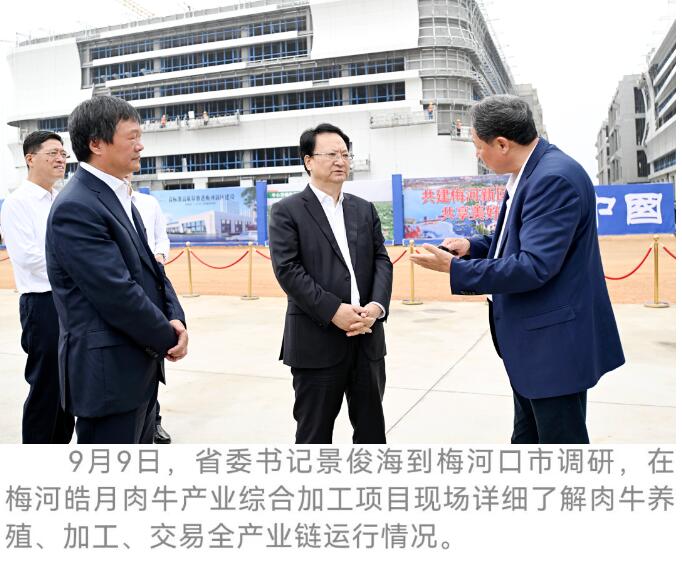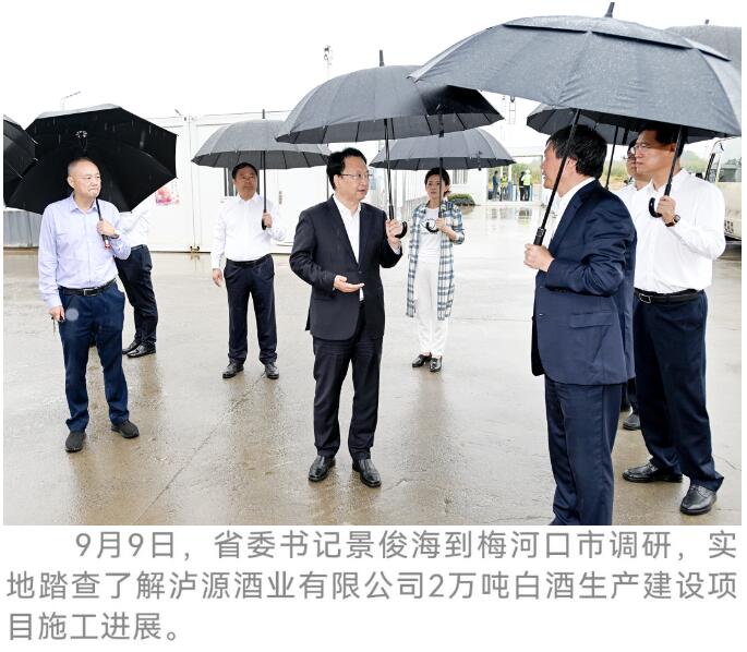 泸源酒业有限公司2万吨白酒生产建设项目是梅河口开源集团与泸州老窖集团合资项目。景俊海实地踏查施工进展,鼓励企业把传统生产工艺与吉林农特产品、道地药材结合起来,研发生产新产品,擦亮区域化、本土化品牌。梅河皓月肉牛产业综合加工项目是集肉牛养殖、加工、交易等于一体的全产业链项目,景俊海鼓励企业紧紧抓住我省推进千万头肉牛建设工程有利契机,积极发展现代生态养殖,努力建设大基地、建成大企业、发展大产业。