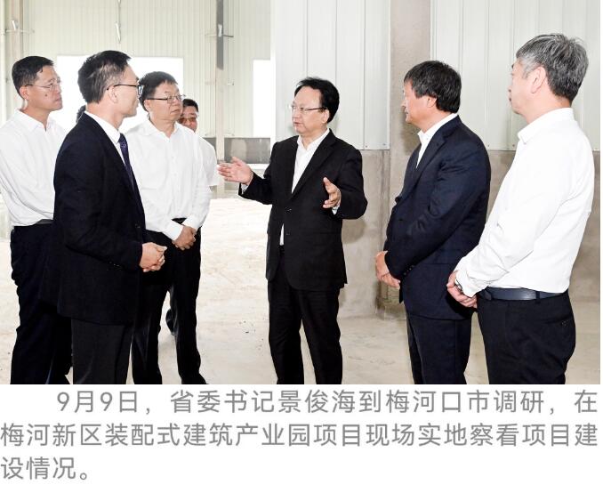 在梅河新区装配式建筑产业园项目现场,景俊海要求有关部门积极探索推广装配式建筑,进一步缩短建设周期、提升建设效率。景俊海详细了解五奎山旅游度假区项目规划情况,强调要把发展冰雪经济作为新增长点,充分发挥资源优势,因地制宜谋划建设冰雪旅游项目,引领推动冰雪全产业链发展。