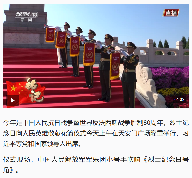 独家视频丨中国人民解放军军乐团小号手吹响《烈士纪念日号角》