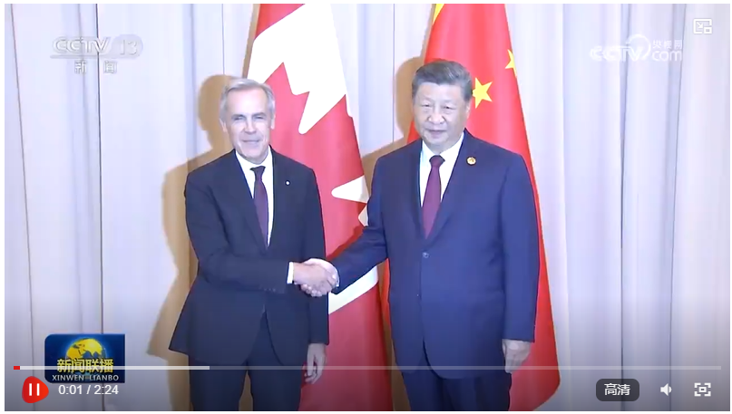 当地时间10月31日下午,国家主席习近平在韩国庆州出席亚太经合组织第三十二次领导人非正式会议期间会见加拿大总理卡尼。
