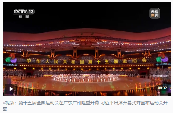 11月9日,第十五届全国运动会在广东奥林匹克体育中心隆重开幕,全运会迎来历史上首次由粤港澳三地共同承办的一场体育盛会。