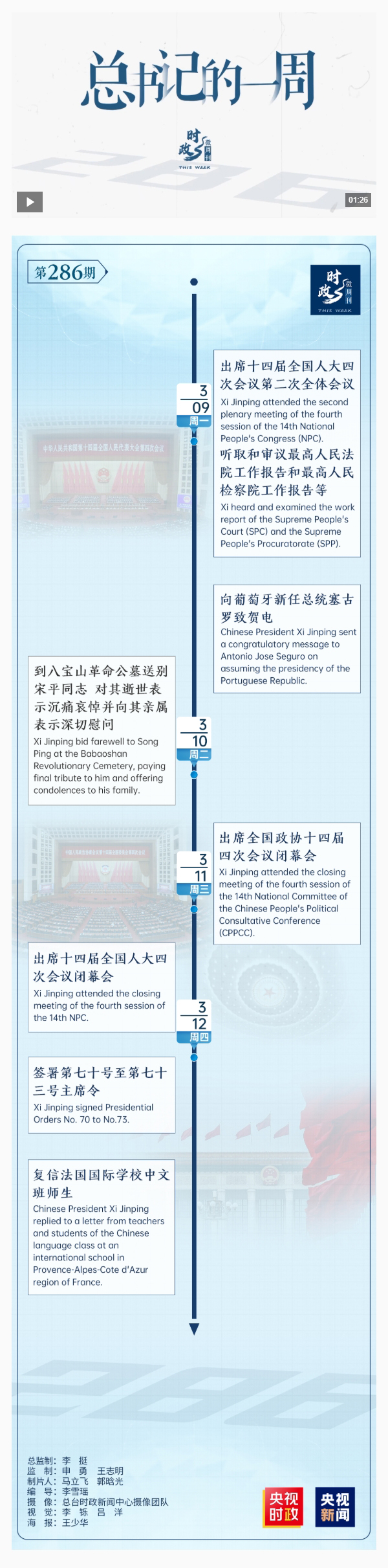 原标题: 时政微周刊丨总书记的一周(3月9日—3月15日)