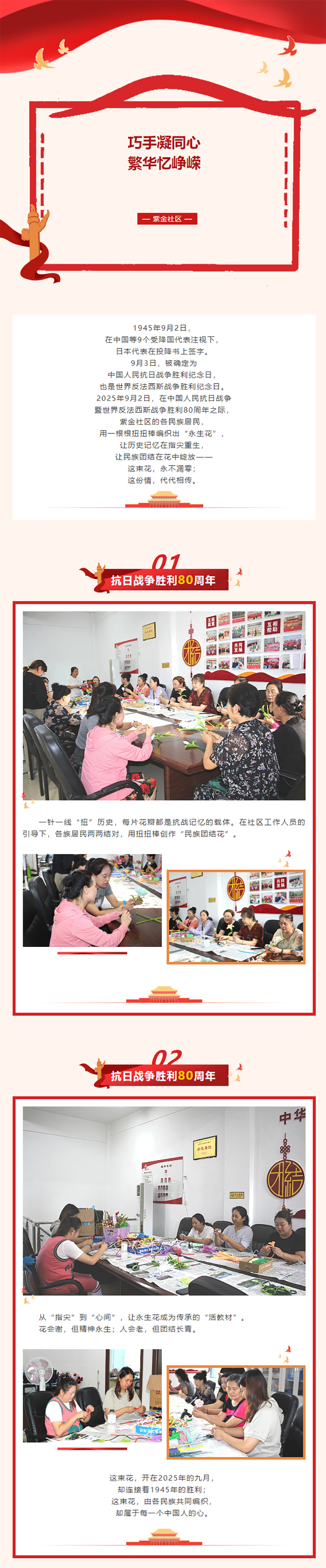 原标题: 巧手凝同心,繁华忆峥嵘-紫金社区开展“纪念中国人民抗日战争暨世界反法西斯战争胜利80周年”手工活动