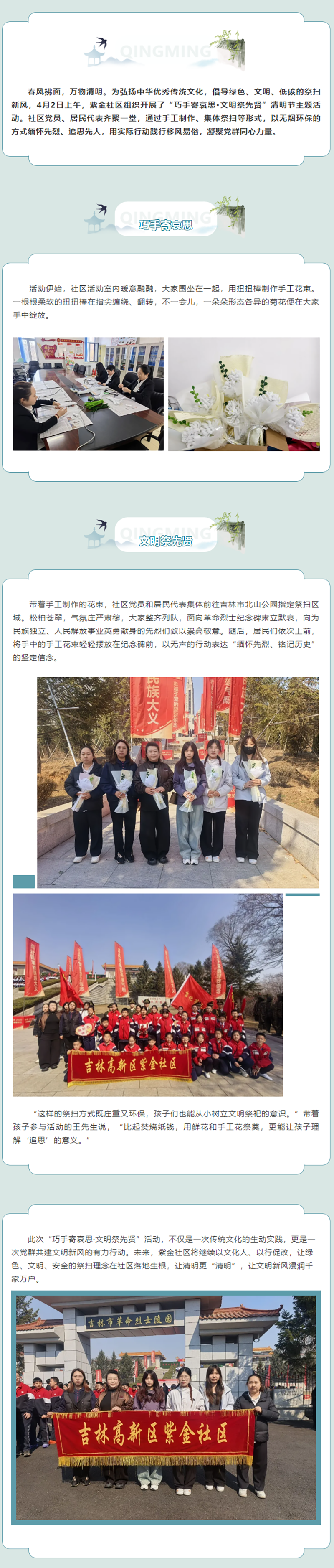 原标题: 巧手寄哀思·文明祭先贤——紫金社区开展清明节主题活动