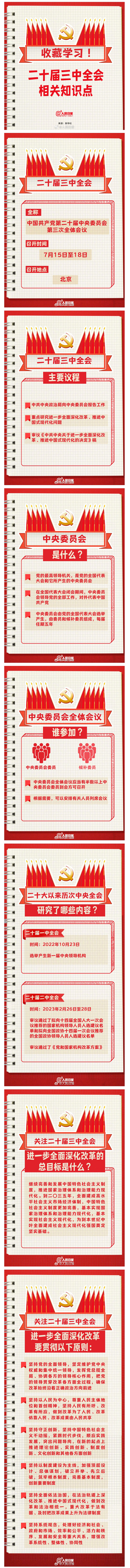 中国共产党第二十届中央委员会第三次全体会议于7月15日至18日在北京召开。二十届三中全会主要议程有哪些?进一步全面深化改革的总目标是什么?二十大以来历次中央全会研究了哪些内容?二十届三中全会是个什么会↓↓转存学习!