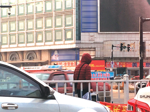 11月19日,在吉林大街与桃源路交会处附近,行人横穿马路走上机动车道,在机动车道靠着路中间的隔离栏逆行,既危险又不文明。(江城日报全媒体记者/矫丰竹 松花江网编辑/杨世阳)