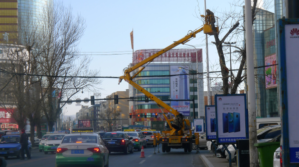 为进一步提升创建全国文明城市优质服务水平,市市政公用局城市照明建设管理中心对松江东路、吉林大街、解放东路、越山路等29条主街路加强了亮灯率、设施完好率、维修及时率保障工作。图为工作人员在对照明设施进行维护。