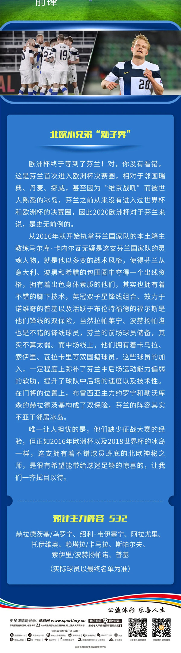 原标题: 【欧洲杯巡礼】B组-芬兰:北欧小兄弟“处子秀”