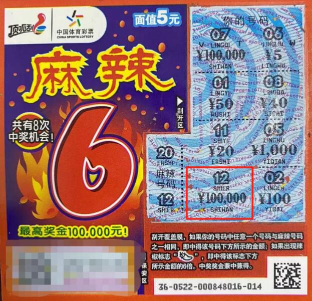 原标题: 幸运购彩者喜中顶呱刮“麻辣6”10万大奖