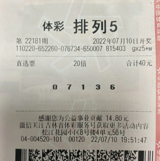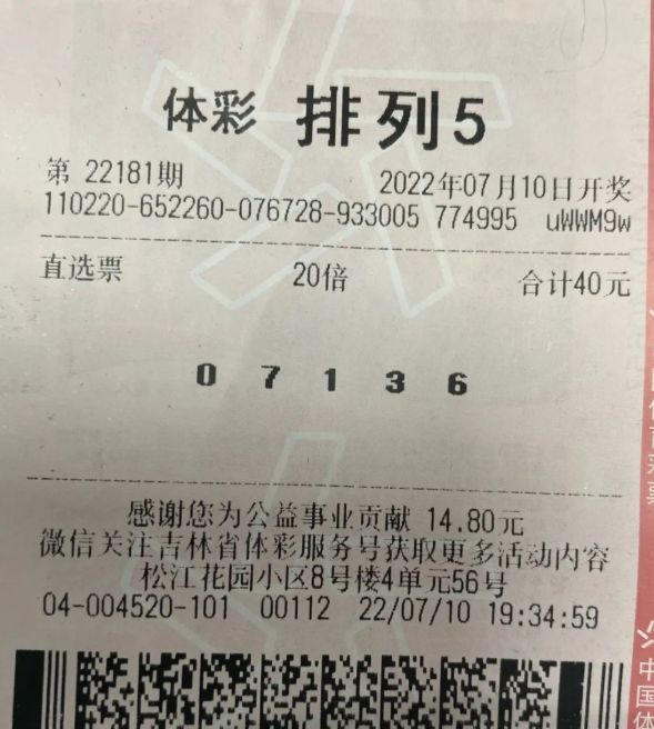 对于买彩票选号的方式是有很多种的,有些人会选择幸运号码,有些人会查看走势图,但无论是哪一种选择都有他们自己的特点。在体彩“排列5”的第22181期中,全国共开出79注一等奖,其中40注由吉林省吉林市松江花园小区8号楼4单元56号的2204004520体彩实体店中出,奖金总计400万。同一家实体店中出了40注“排列5”一等奖,莫非产生了多位中奖者吗?