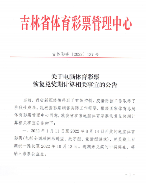 原标题: 关于电脑体育彩票恢复兑奖期计算相关事宜的公告