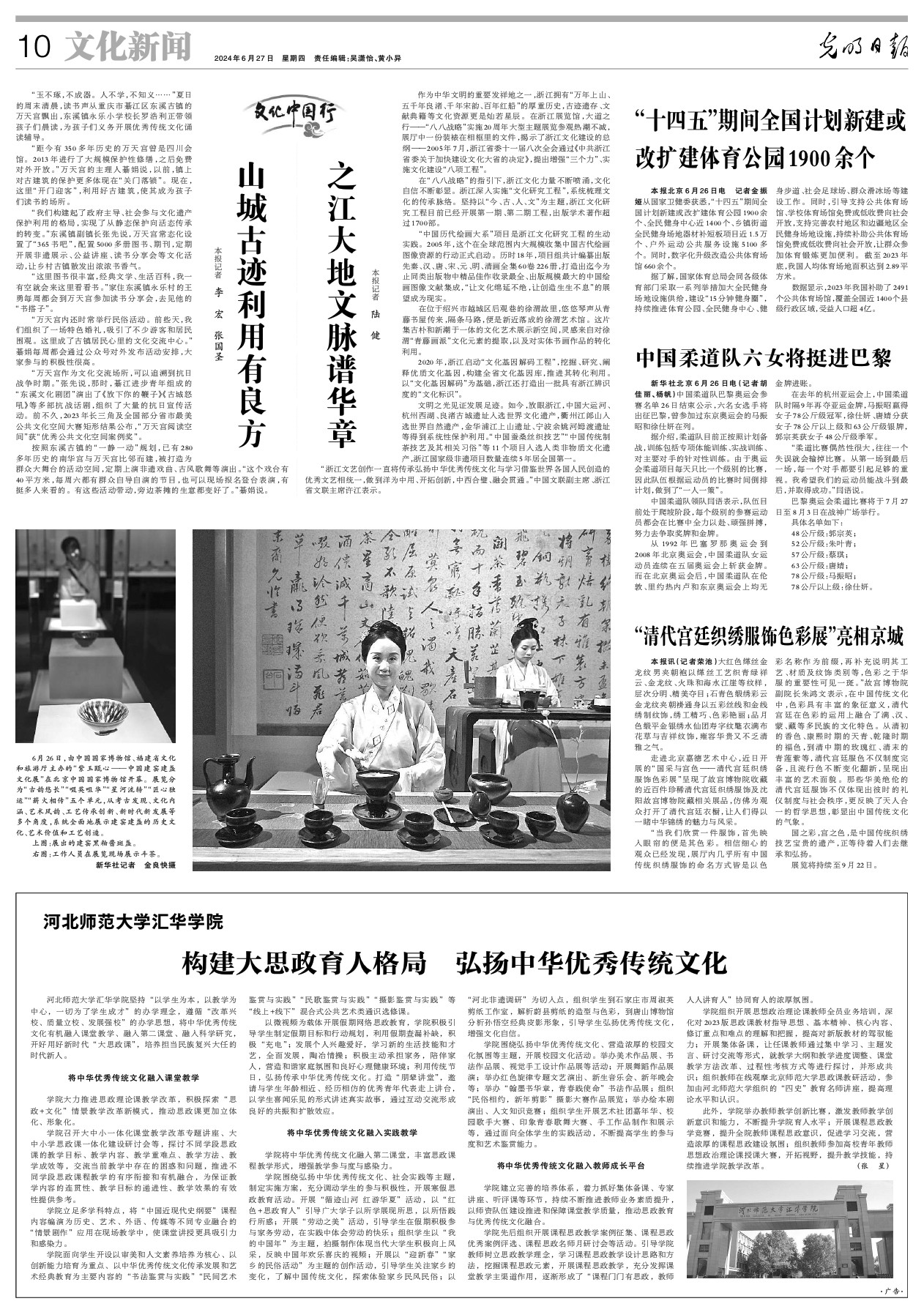 文明之光见证发展足迹。如今,放眼浙江,中国大运河、杭州西湖、良渚古城遗址入选世界文化遗产,衢州江郎山入选世界自然遗产,金华浦江上山遗址、宁波余姚河姆渡遗址等得到系统性保护利用。“中国蚕桑丝织技艺”“中国传统制茶技艺及其相关习俗”等11个项目入选人类非物质文化遗产,浙江国家级非遗项目数量连续5年居全国第一。